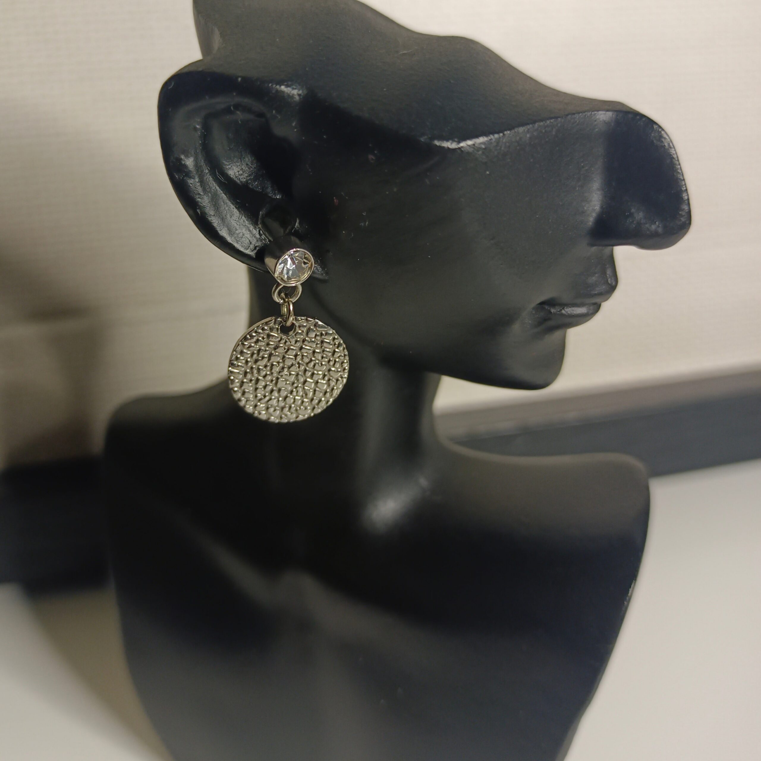 Découvrez les boucles d’oreilles ANNA, conçues à la main en acier inoxydable argenté, avec un disque texturé et des strass en zirconium. Parfaites pour ajouter une touche d’élégance à votre tenue tout en bénéficiant d’une durabilité exceptionnelle, ces boucles d’oreilles uniques et faites à la main sont l’accessoire idéal pour rehausser votre style avec sophistication.