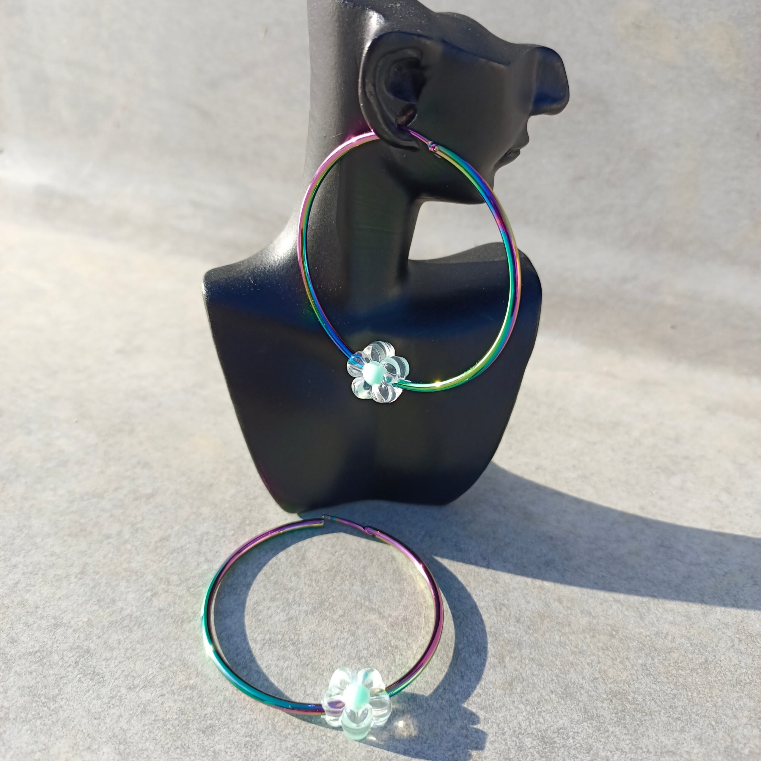 DĂ©couvrez nos crĂ©oles FLORA, faites main et personnalisĂ©es en acier inoxydable, arborant un design arc-en-ciel avec une petite fleur raffinĂ©e et mignonne. Ces crĂ©oles ajoutent une touche d’originalitĂ© Ă vos tenues tout en Ă©tant rĂ©sistantes et uniques. Ă€ offrir ou Ă s’offrir, elles seront toujours un choix parfait pour sublimer votre style.