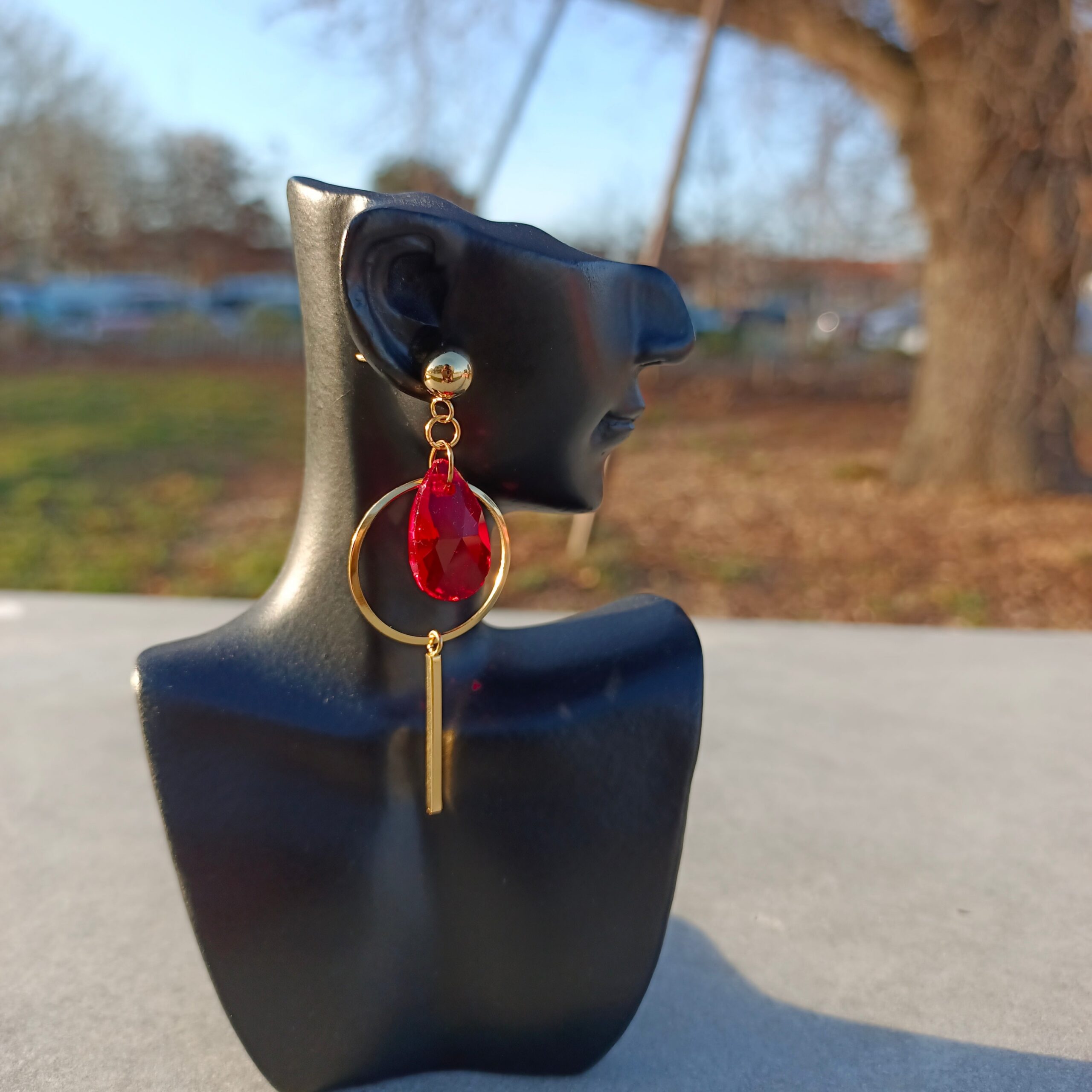 Découvrez notre paire de boucles d’oreilles RUBY, faites main en acier inoxydable doré et ornées de gouttes de cristal rouge. Ajoutez une touche de brillance à votre tenue avec ces accessoires uniques et résistants. Parfaites pour une soirée spéciale ou pour compléter votre look quotidien avec style et élégance.