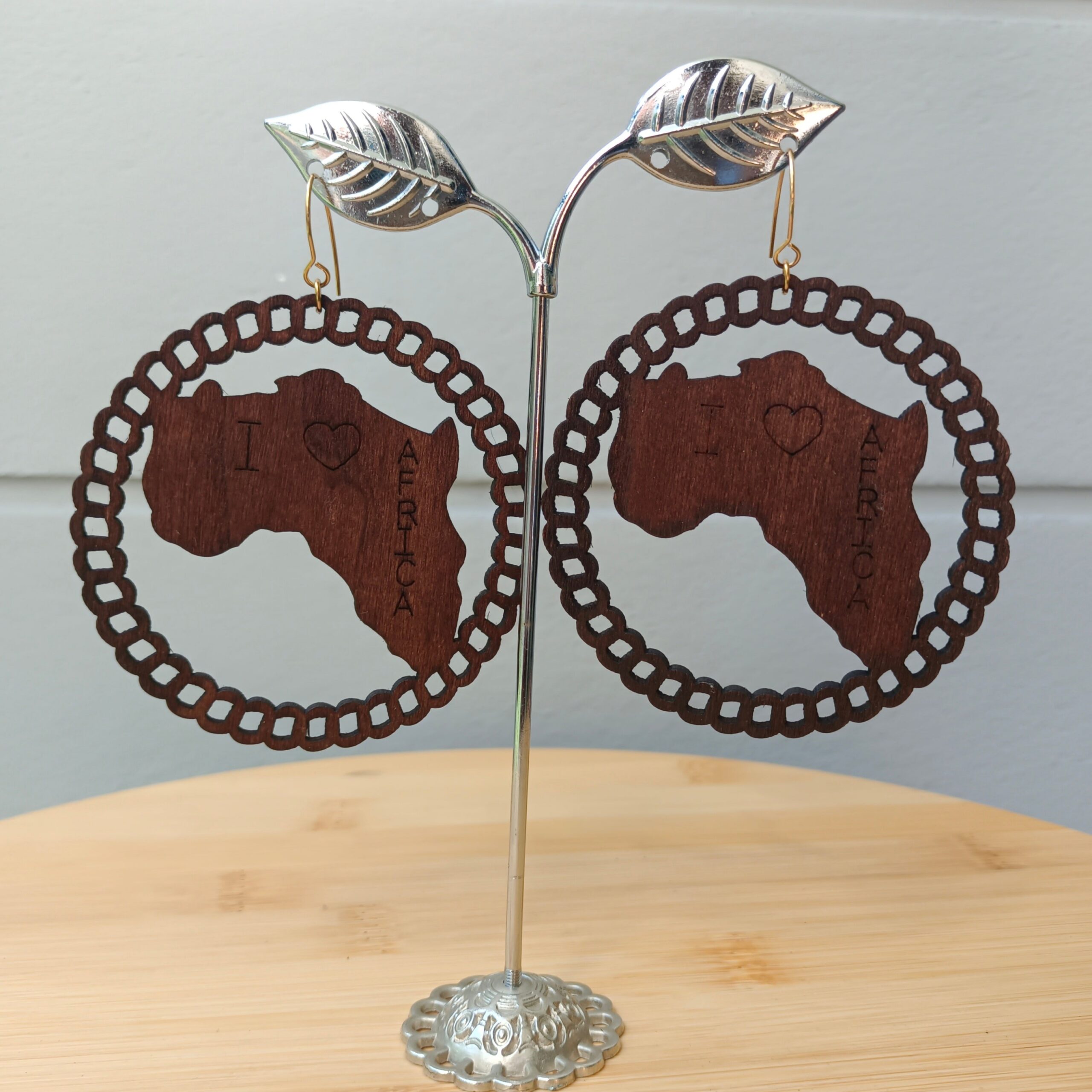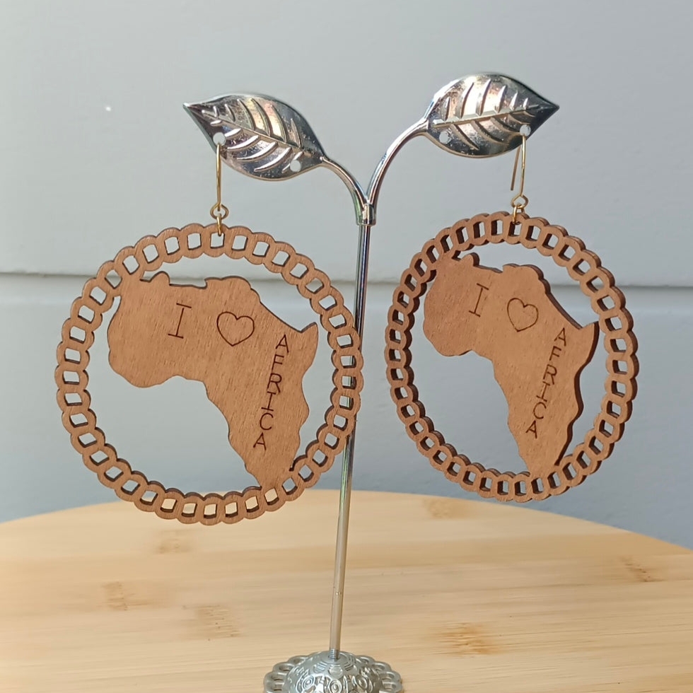 Les Boucles d’Oreilles LOVE AFRO CRÉOLES, faites main en acier inoxydable dorĂ© et bois, incarnent l’Ă©lĂ©gance, la lĂ©gèretĂ© et la beautĂ©. Parfaites pour une lady glamour sophistiquĂ©e ayant une affection pour l’Afrique. 🌍✨
