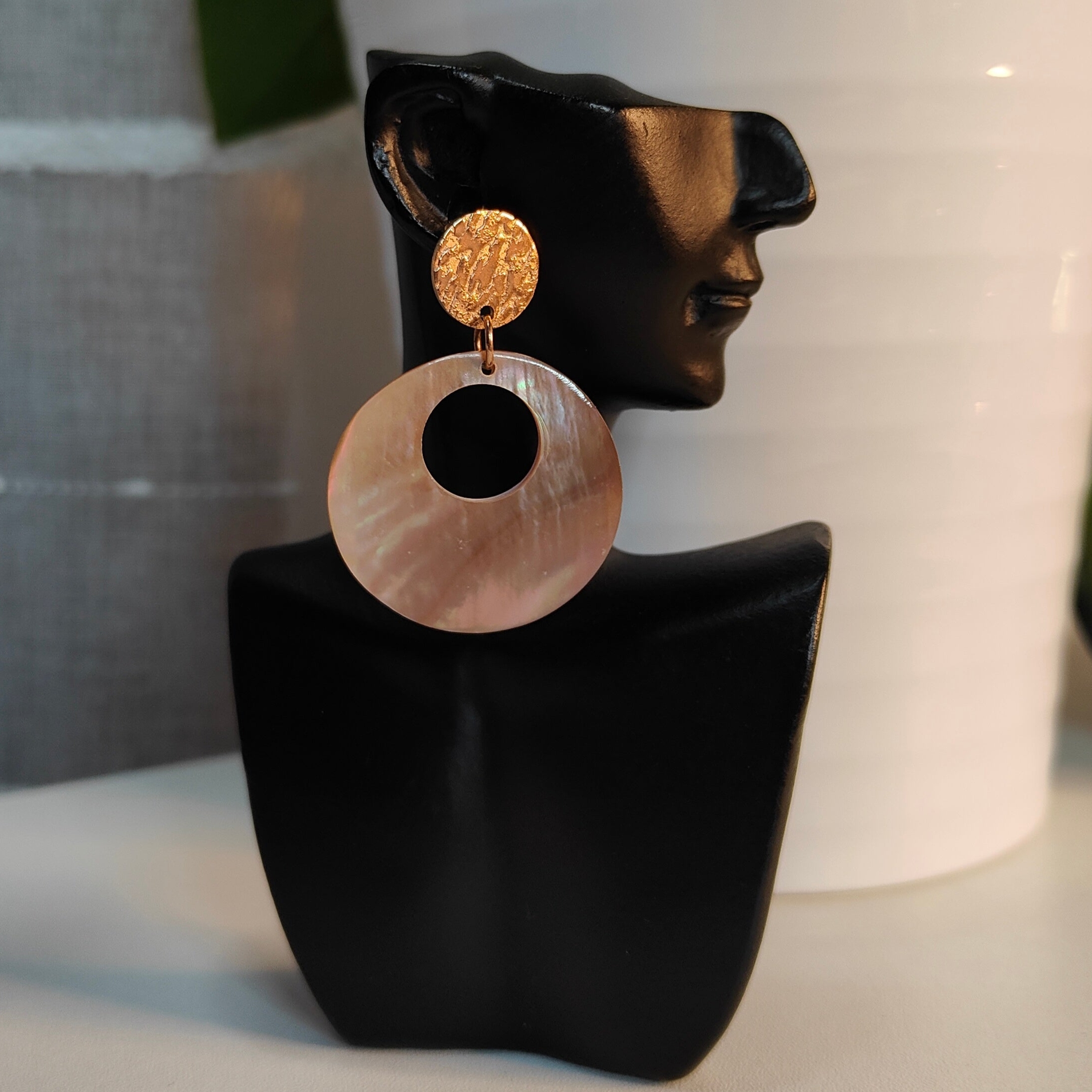 Inspirées par mes voyages dans les îles de l’archipel Polynésien, les boucles d’oreilles SEREYA associent des coquillages sculptés de la Polynésie Française et de l’acier inoxydable rose.