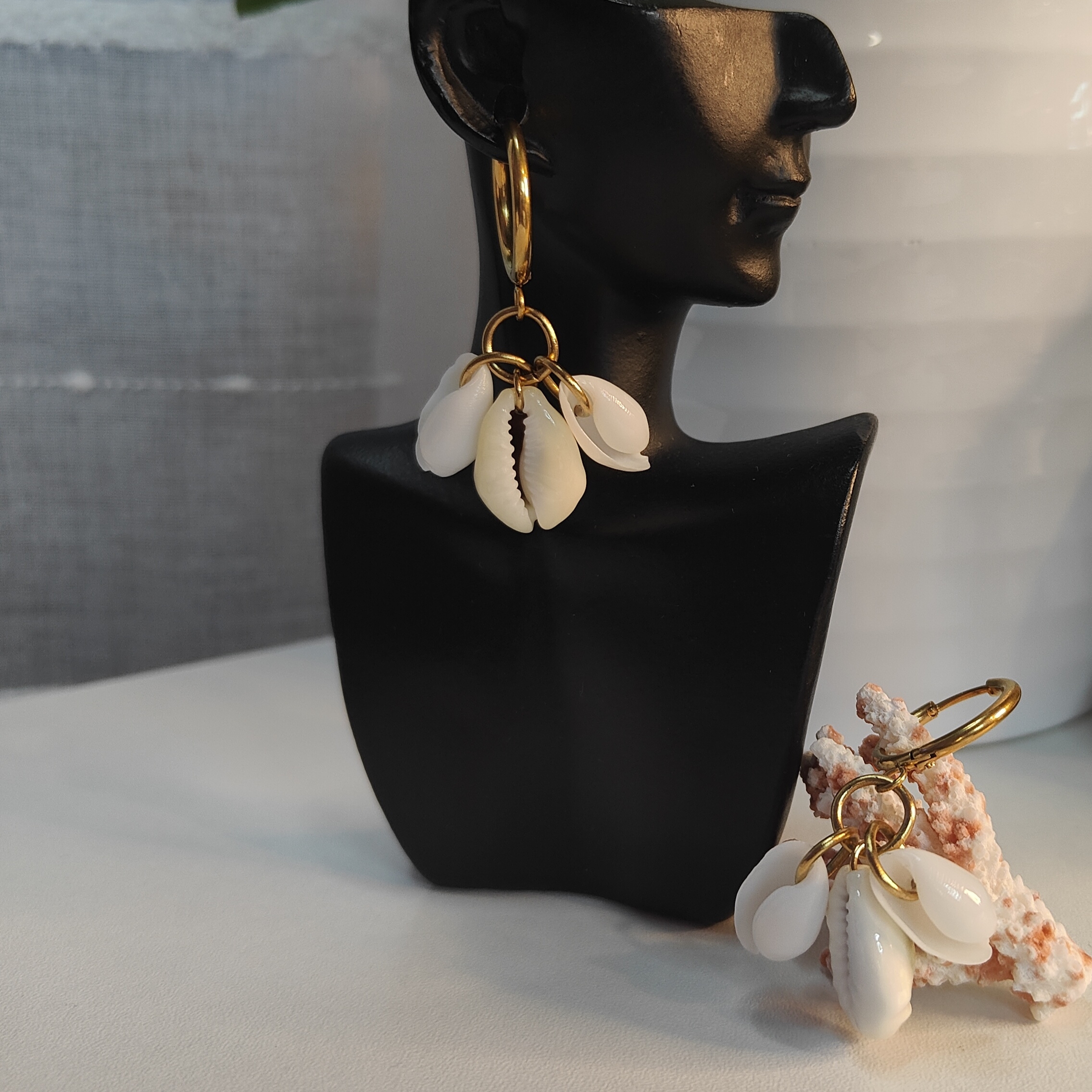 Les mini créoles SIA : Confectionnées à la main en acier inoxydable doré, elles sont ornées de cauris et coquillages de TAHITI. Ces boucles d’oreilles apportent une touche d’élégance exotique à vos tenues quotidiennes, combinant qualité et style.