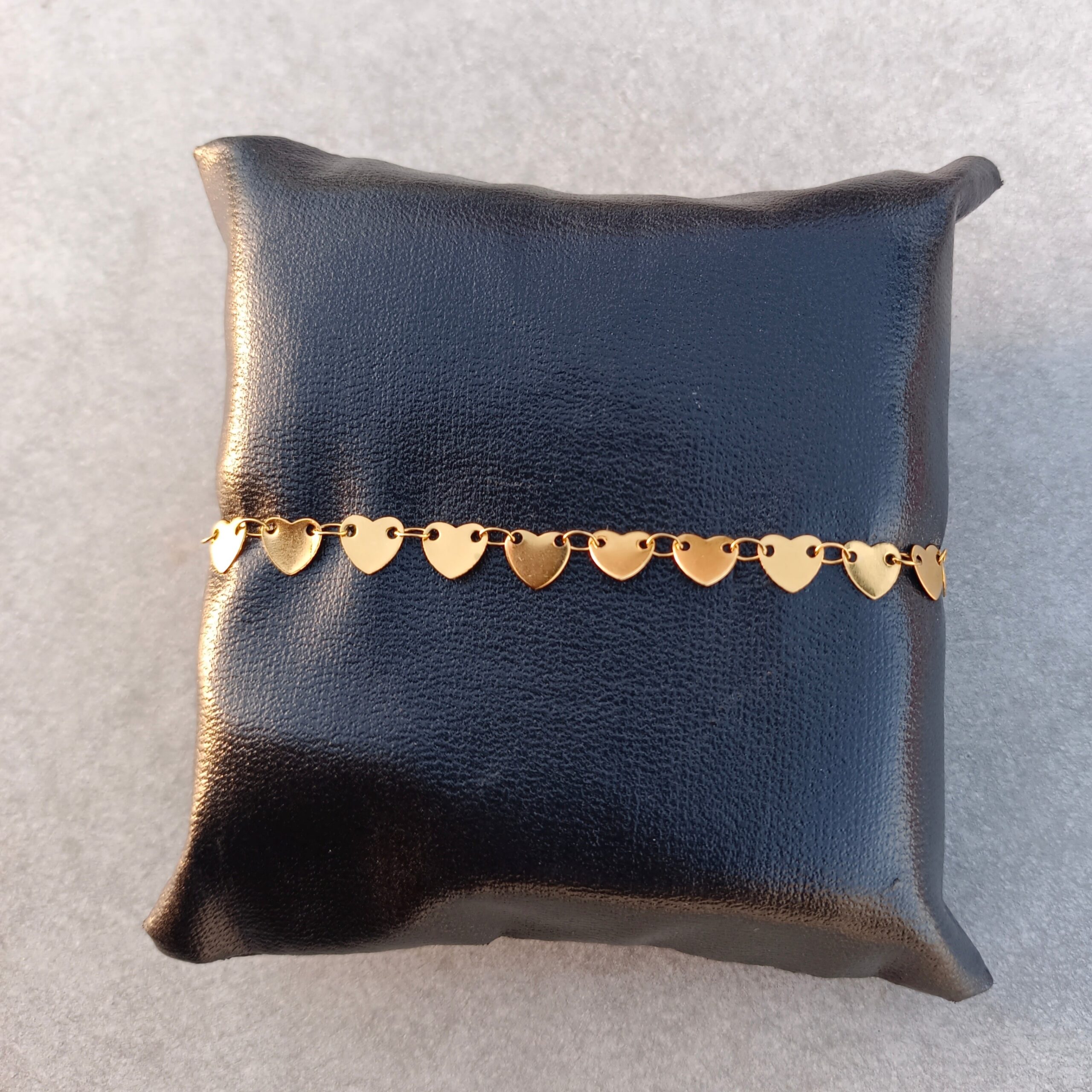 DĂ©couvrez notre bracelet LOVA 🧡, confectionnĂ© Ă la main avec des mailles en forme de cĹ“ur en acier inoxydable dorĂ©. Cet accessoire Ă©lĂ©gant et durable ajoutera une touche de charme Ă votre look. FabriquĂ© avec des matĂ©riaux de qualitĂ©, ce bracelet apportera une touche de brillance Ă vos tenues tout en rĂ©sistant Ă l’usure quotidienne.
