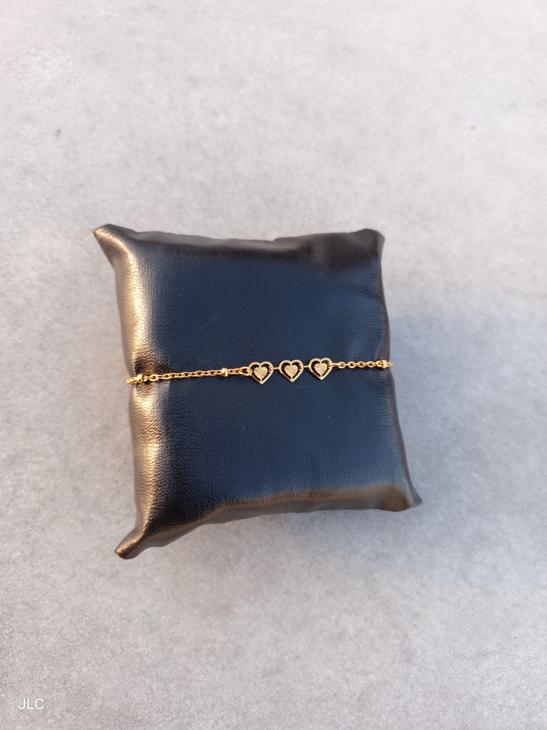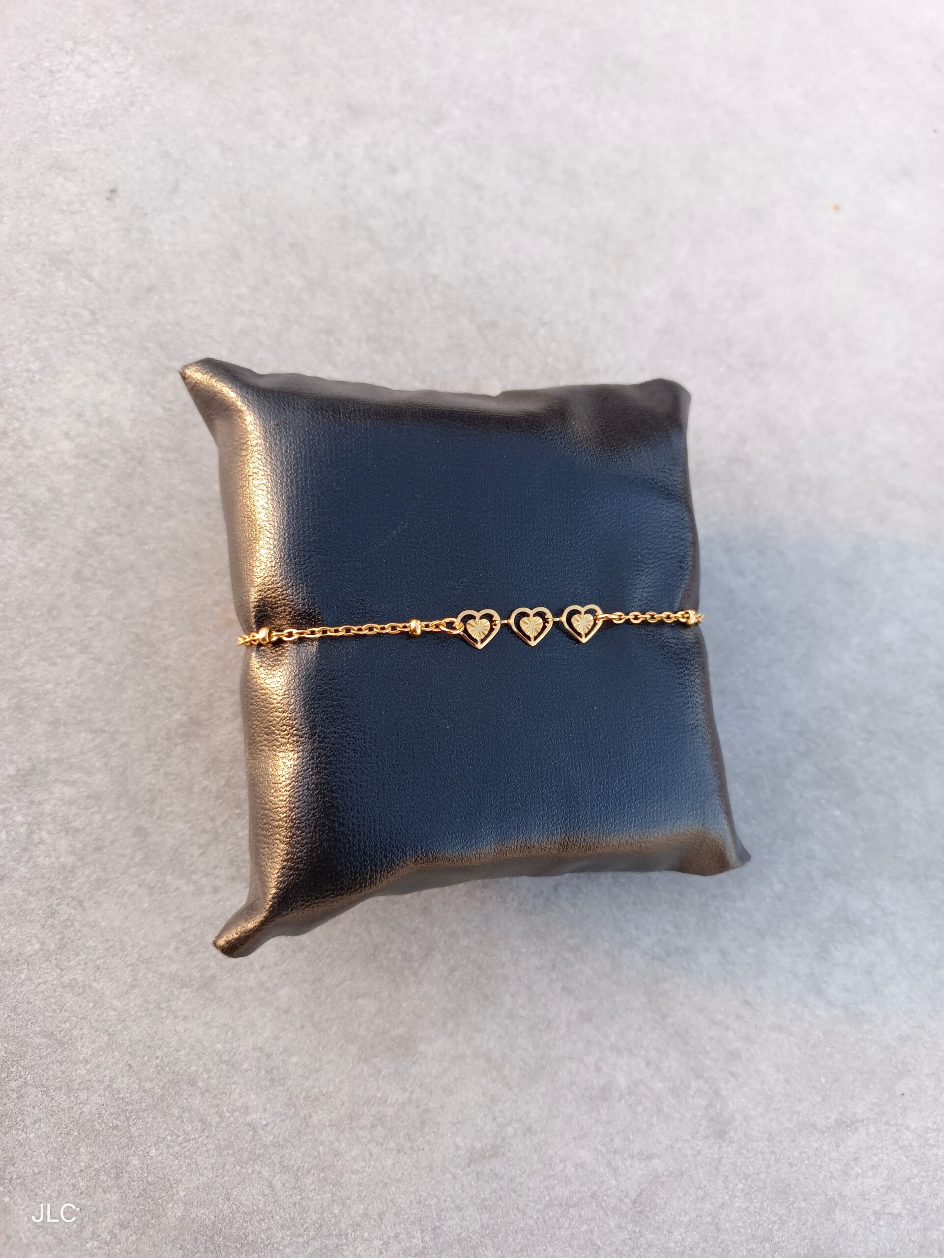 Ce bracelet de chaĂ®ne perlĂ© avec trois petits cĹ“urs, fait main en acier inoxydable dorĂ©, est une addition Ă©lĂ©gante Ă toute tenue. FabriquĂ© avec soin, il apporte une touche de sophistication Ă n’importe quelle occasion. Son matĂ©riau de qualitĂ© garantit une durabilitĂ© et une rĂ©sistance Ă la corrosion, assurant un bijou qui durera.