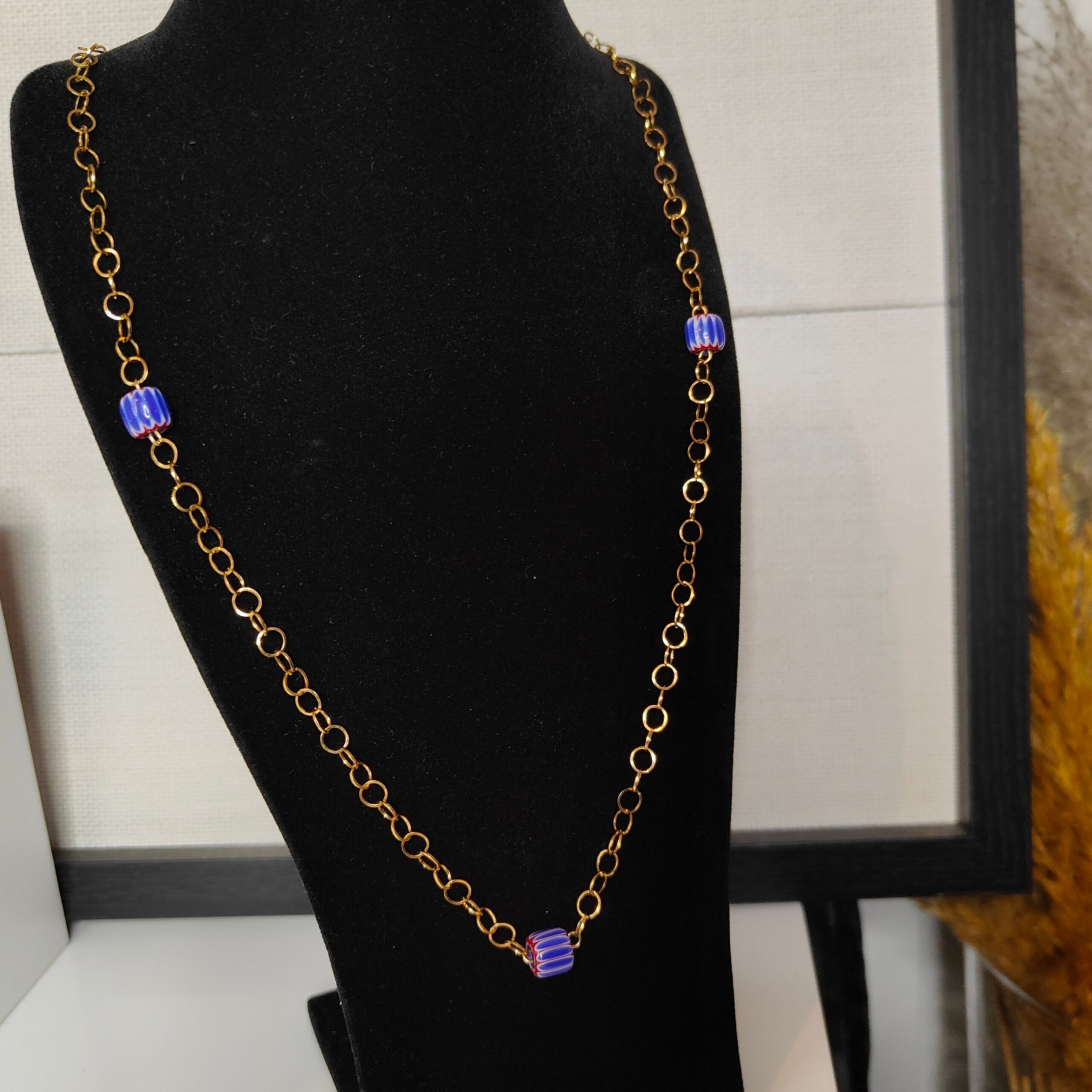 Le sautoir FOSSI : Un bijou artisanal en acier inoxydable, orné de perles africaines uniques. Fabriqué à la main, il allie élégance et durabilité, ajoutant une touche d’originalité à toute tenue.