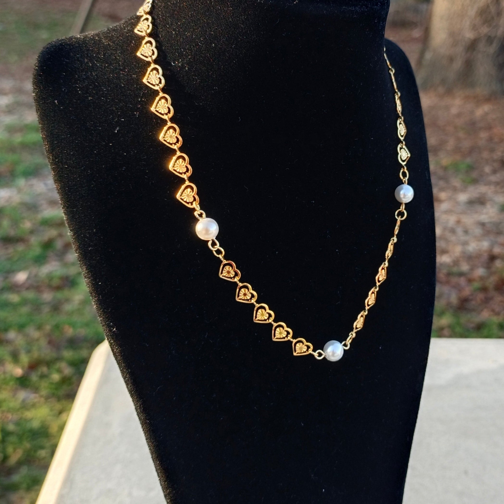 Découvrez KAYNA, un collier en cœurs dentelés et perles de verre fait main en acier inoxydable doré. Son design glamour, raffiné, romantique et sophistiqué vous donnera un look élégant et chic en toute occasion. Fabriqué avec des matériaux de qualité, ce collier apportera une touche de glamour à votre tenue.