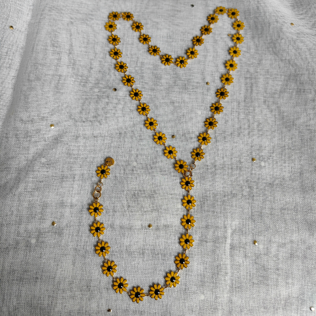 Ce sautoir en acier inoxydable doré avec motif à fleurs de Marguerite est fait main et peut se porter en Y pour sublimer votre look au quotidien. Son design délicat et élégant apporte une touche de charme et de raffinement à chaque tenue. Un bijou unique alliant qualité et beauté naturelle, parfait pour ajouter une note florale sophistiquée à votre style.